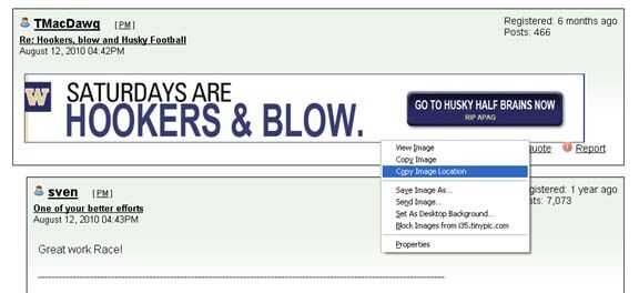En primer lugar es necesario adquirir la dirección de la imagen que desea utilizar.   Haga clic derecho sobre la imagen con el ratón y seleccionar "Copiar imagen ubicación."