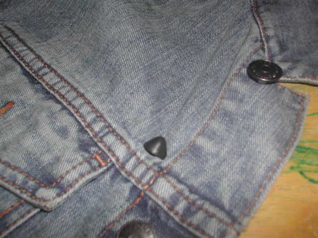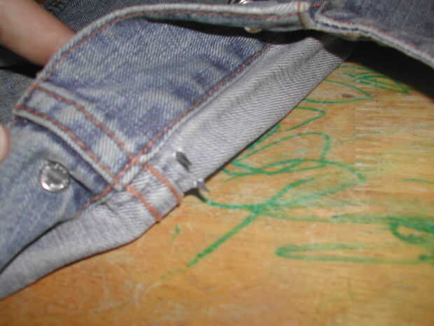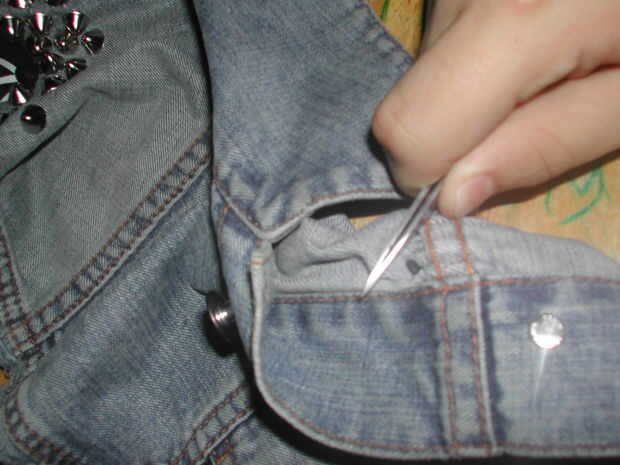 En dril de algodón, se puede tratar ya sea el perno a través del material, que puede ser difícil y puede realmente rasgar la tela o facilitar la tela aparte con sus pinzas antes de presionar las puntas de espárrago a través de la fuerza.