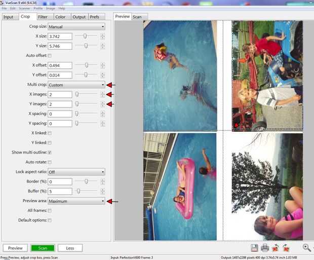 VueScan recordará esta configuración para todas las exploraciones subsecuentes hasta que se modifiquen. Si todas tus fotos son del mismo tamaño, esto realmente acelera el proceso.