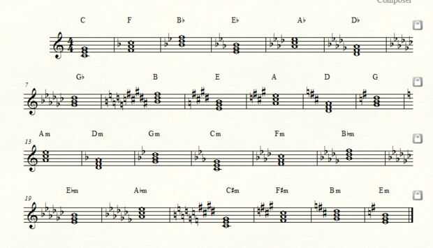 - Acordes se componen de primero, tercero y quinto pasos de la mayor o menor escala.
