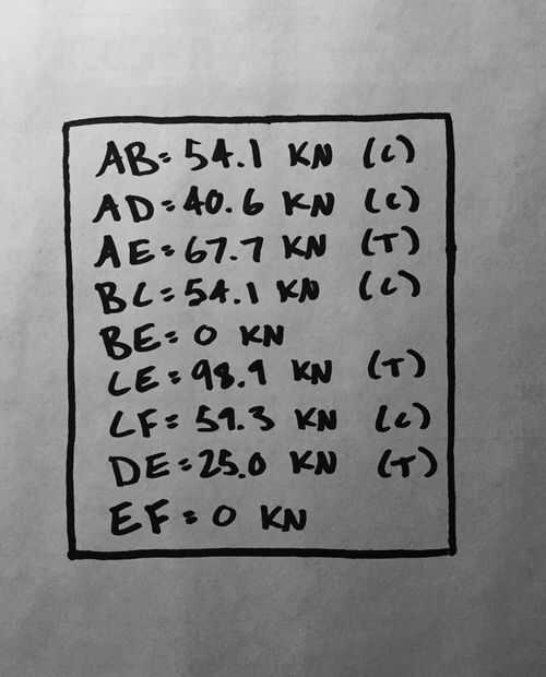 Al final, se reúnen todos los valores que usted haya encontrado (deben todos ser encajonados) y colocarlos todos juntos al final. Asegúrese de incluir unidades de kN e indicar la T o C para cada uno. Este es el acabado del producto.