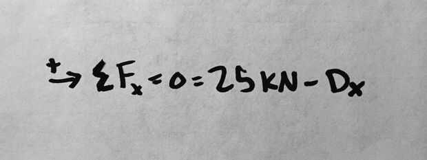 Las fuerzas externas sólo son una positiva 25 kN (kilonewtons, una unidad de fuerza) y un desconocido "negativo" la fuerza de Dx.