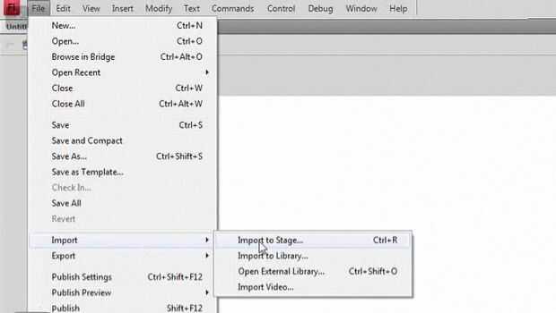 En el menú principal, seleccione Archivo, importar, importar a escenario. Desplácese a una imagen que desea agregar al proyecto y haga clic en "Abrir". Ajustar la anchura y la altura de la imagen haciendo clic en el panel Propiedades y ajuste los valores de W y H.