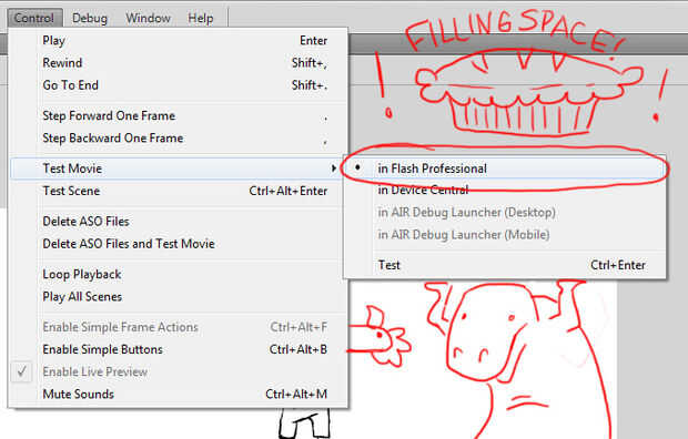Para ello, sólo tienes que ir al menú de control, de la gota abajo y flotar sobre probar película y seleccione 'en Flash Professional'. Se abrirá una ventana que le permitirá escuchar la animación sin todas las otras cosas para distraerte de su belleza. En realidad, cuando vi belleza, quiero decir, relativamente pixelado oscura-ness, pero no te preocupes, una vez hacerla, será ser justo tan hermosa como lo fue en la etapa.