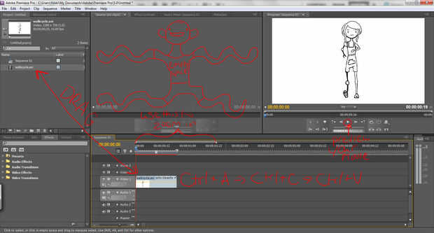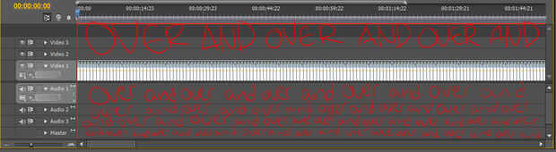ESTAMOS TAN CERCANAS, CAÍDA EN ALLÍ BEBÉ! Bien, ahora tenemos en bucle el clip por copiar y pegar mucho. La manera fácil de hacerlo es darle Ctrl + A (por lo que usted sabe que tiene el clip seleccionado), luego Ctrl + C (para copiar el clip) y, por último, Ctrl + V (para pegar el clip). Esto es una buena manera de hacerlo, creo, porque cada vez que golpea Ctrl + A selecciona todos los clips en la línea de tiempo, para cada vez que pegue, que tenga doble los clips que tiene antes de.