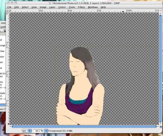 G - lo siento, pero Gimpies tienes algún trabajo que hacer! Va en primer lugar elegir un color cercano a la piel. un buen comienzo es R - 225 G - 227 B - 187. Pintura sobre toda la piel. Si tienes el pelo o algo, eso es aceptable. Muestra los colores de la ropa usando la herramienta de cuentagotas, luego pintura sobre la ropa de color. Usted también puede hacer lo mismo sobre el pelo, pero eso es opcional. También se borrarán los rasgos faciales aquí también. Recuerde antes de hacer esto para marcar sus rasgos faciales si no lo ha hecho ya.