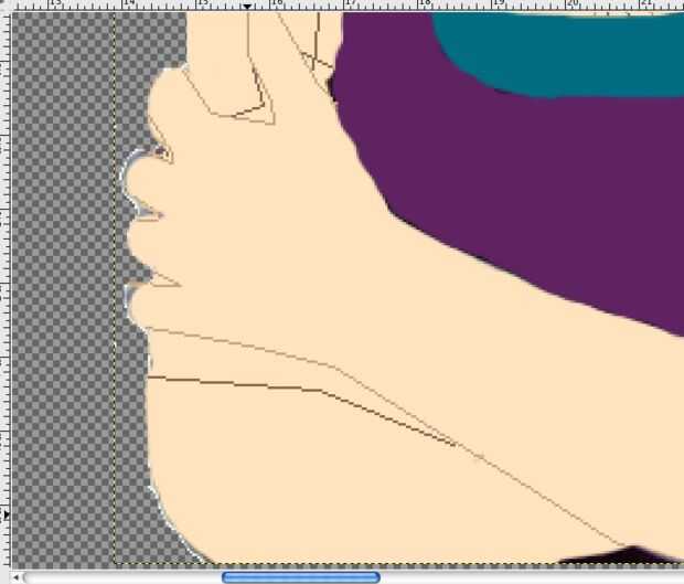 La figura 3 muestra el final del relleno. Utilice el pincel o paintbucket para llenar las áreas sombreadas variadas. Por último, utilice la herramienta dedo para suavizar y mezclar la sombra. Ejecutar la herramienta a lo largo de la línea inicial tiende a funcionar bien. Esto puede ser bastante difícil de hacer bien, así que pasar algún tiempo.