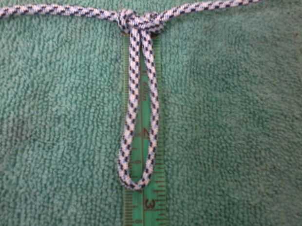 El bucle de bajo es el centro de la cuerda, 2 lazos empezar el primer nudo cuadrado de macrame media. Apriete, que el bucle bajo es 7 cm.