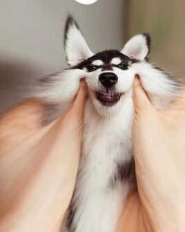 Suavemente pero con firmeza, aplasta las manos juntos, lo que permite las mejillas hesky aplastar.