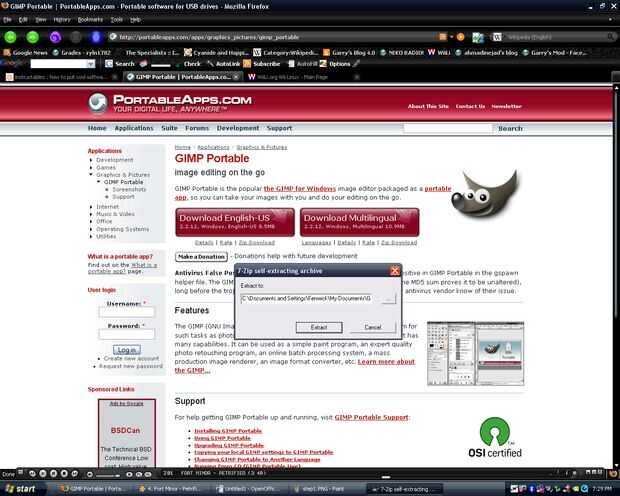 a http://portableapps.com/ y haga clic en aplicaciones. Elegir tu aplicación, descargar el archivo de instalación y ejecute el archivo de configuración. Incluso puede utilizar la Suite de aplicaciones portables y obtener todas las aplicaciones en un CD; es en el tamaño de archivo de 700 MB de un CD estándar. Estoy utilizando GIMP para la simplicidad.