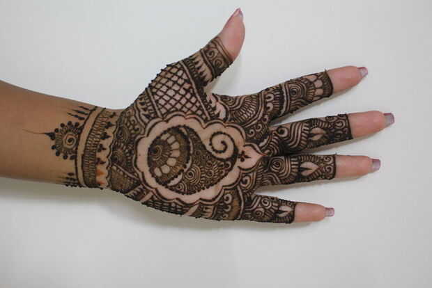 Ir trabajar en un diseño que llena todo el brazo. Comenzar con la creación de un diseño de flores de media y al mover el brazo hacer algunas flores completadas. Llenar tus manos con variedad de diseños y experimentar con imágenes de dulhan dulha para hacer el diseño sano al igual que la imagen que se muestra arriba. Puede Agregar un toque de gloria animado mediante la aplicación de tonos sutiles.
