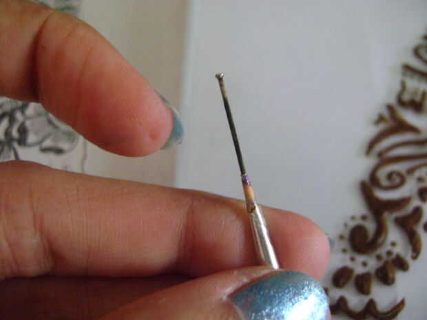 Cuando estés listo para comenzar, tome el pin de cono y apriete un poco henna en un pedazo de papel de seda. Será negra al principio y duro demasiado, seguir apretando hasta que la mezcla sale de color claro y suave.