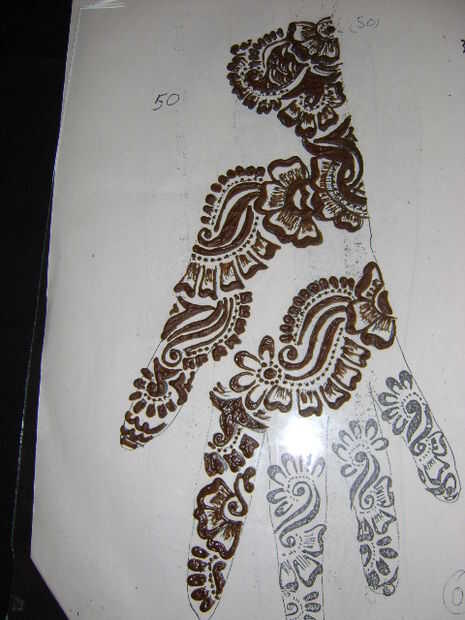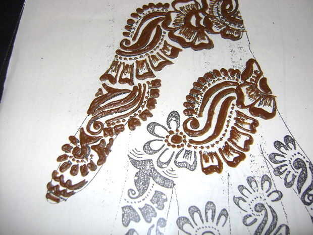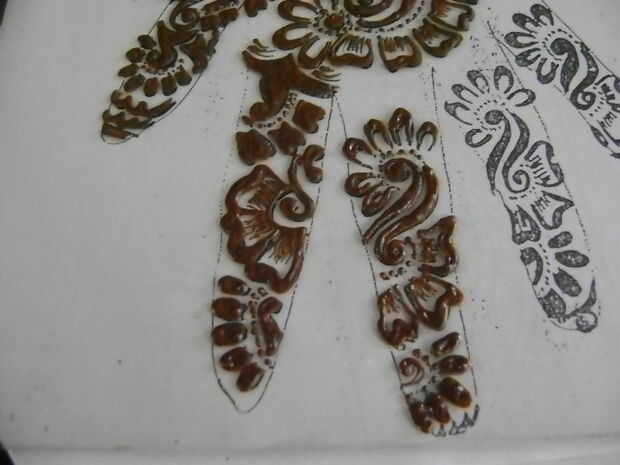 Ahora han aprendido a apretar, limpiar y mantener el cono. Empezar a aplicar la henna en la hoja de vidrio siguiendo el diseño del papel. Como un principiante, su mano se mantenga temblor, las líneas será onduladas y será desordenado. No te preocupes pasa.