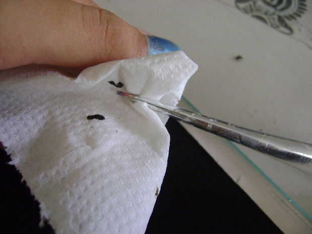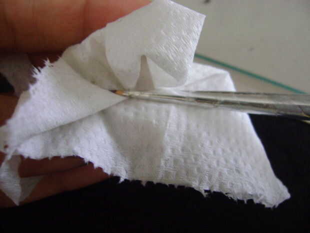 Como empezar a aplicar, la punta sigue conseguir sucia, para mantener la limpieza con papel de seda. Más limpio la punta, el mejor será su trabajo.