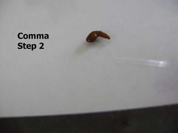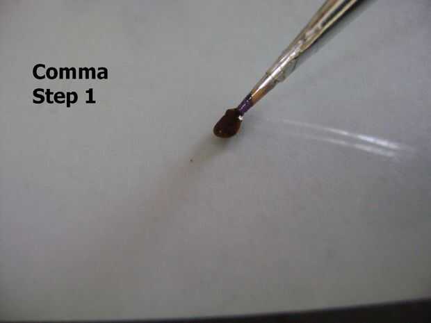 Coma - primero hacer un punto sin levantar el cono, pero dando la curva y luego levantar lejos.