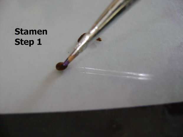 Estambre – primero hacer un punto y luego mantener la presión hacia abajo y levante el cono para hacer una punta.