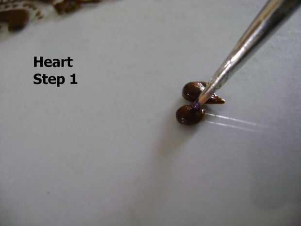Haciendo corazón – puede ser utilizado como un pétalo demasiado. Hacer primero un estambre. Luego hacer un punto al lado de él, uniendo los dos extremos como terminación.