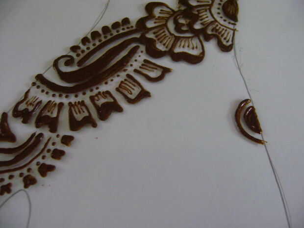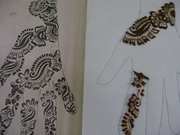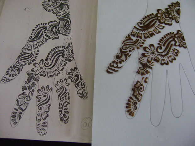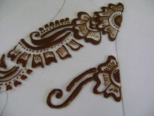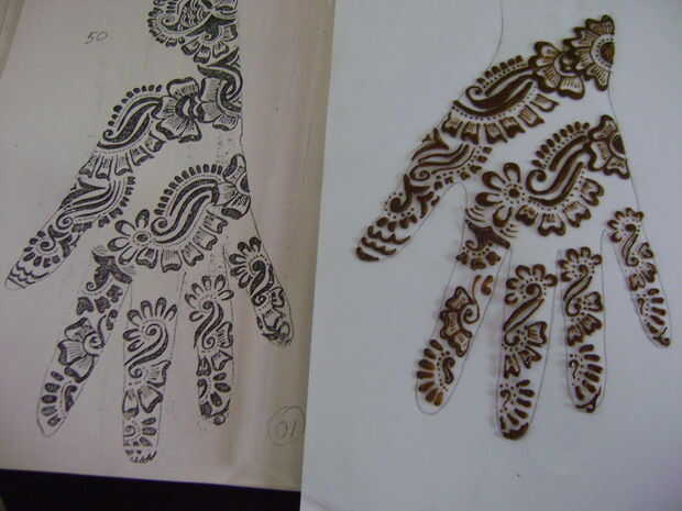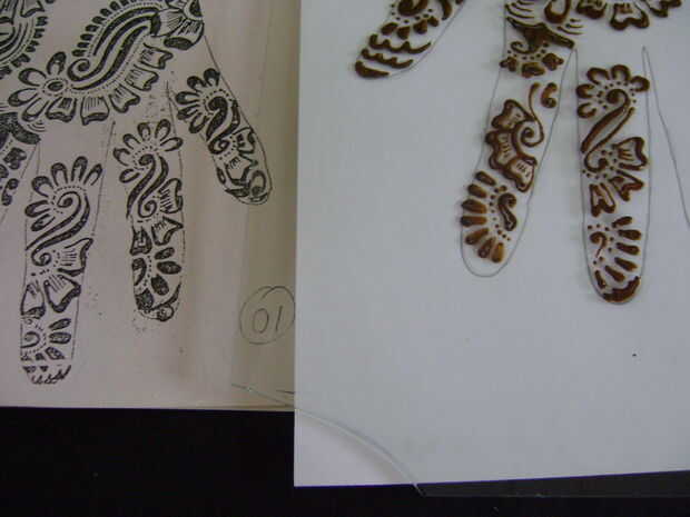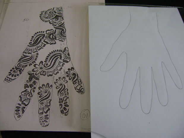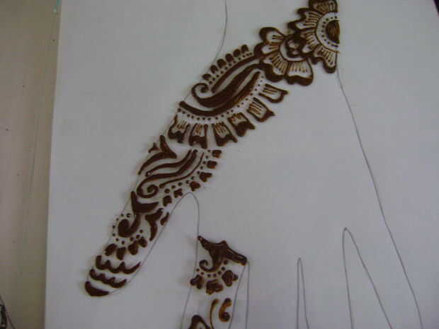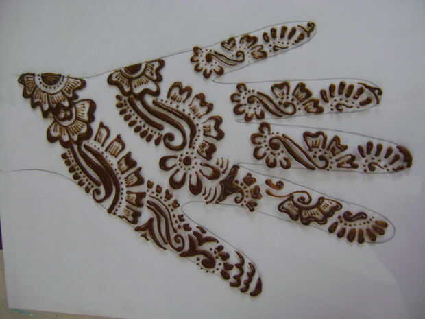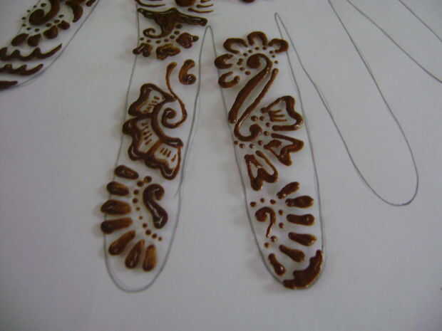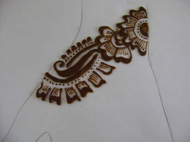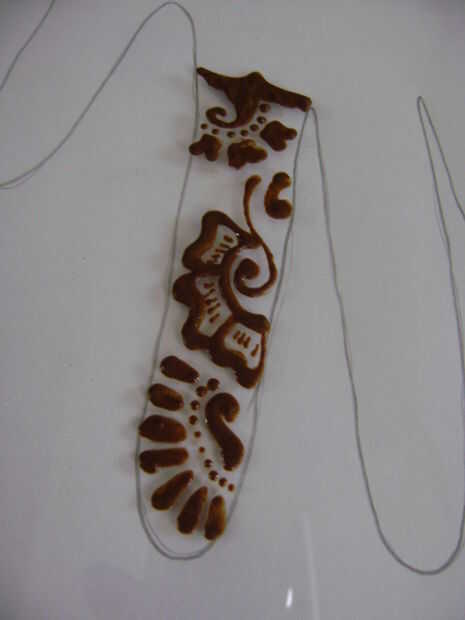 Como un principiante será difícil para usted para decidir de donde se debe empezar a aplicar henna. Así que en esta etapa, empieza desde la base del dedo índice. El diseño de papel impreso y trazar en la hoja de vidrio sólo mirar como usted está haciendo un bosquejo.