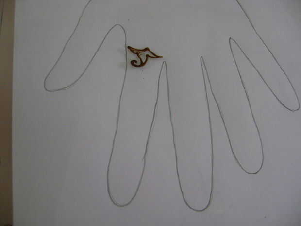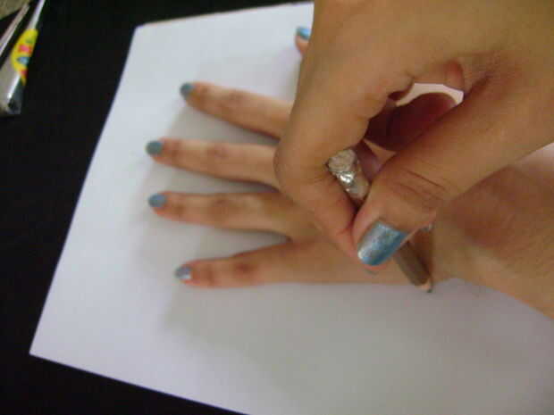 Poner el diseño impreso al lado del trazo de la mano para que sean paralelas y bastante cerca.