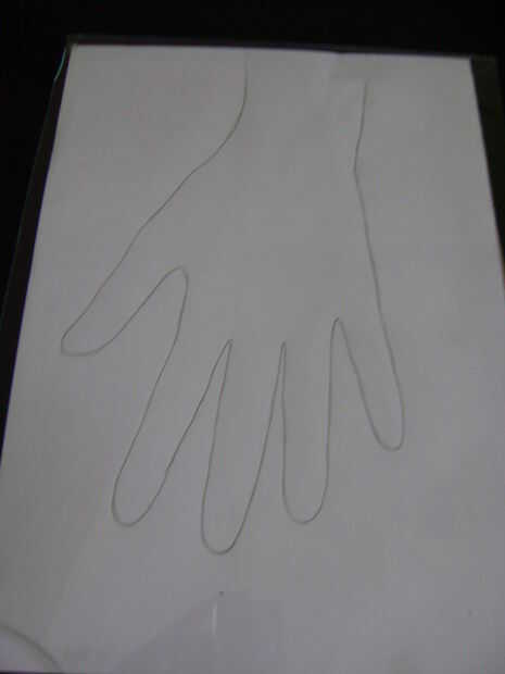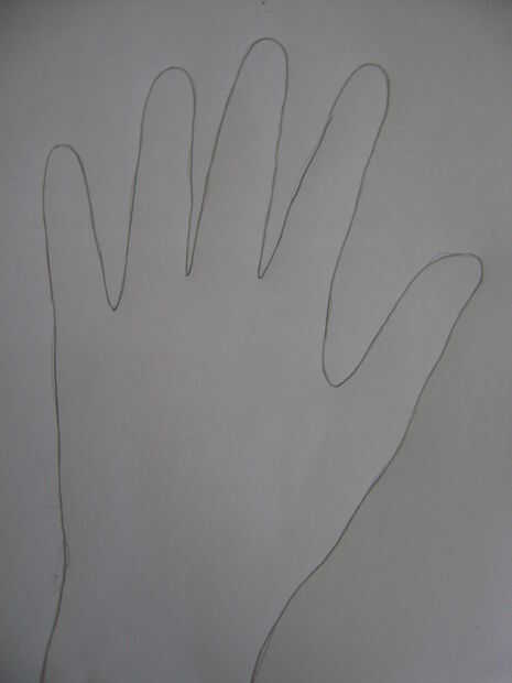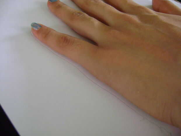 Tome una hoja A4 o un simple trozo de papel. Coloque su mano izquierda en él si usted es derecho y viceversa. Con el lápiz dibujar un contorno de su mano sobre el papel.