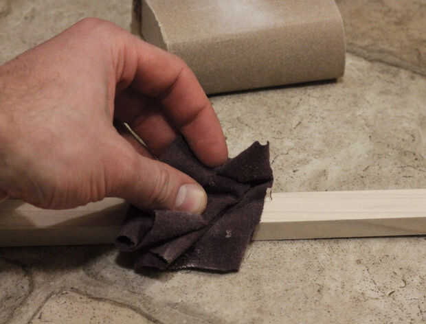 (* Si polvo es difícil de eliminar puede mojar el trapo con unas onzas de aguarrás y luego limpie la pieza de trabajo. El polvo se pegue más fácilmente en el trapo mojado, y el aguarrás en la madera se evaporarán rápidamente.)