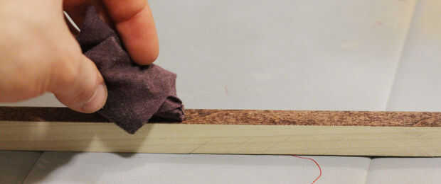 Aplicar la mancha con movimiento de barrido del trapo mojado en la pieza de trabajo. Limpie en la dirección de (paralelo a) la dirección del grano.