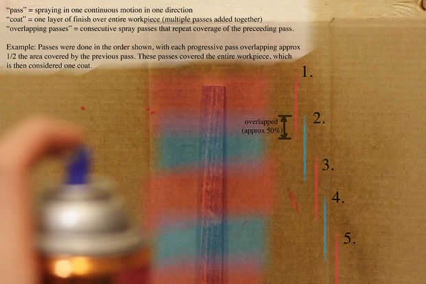 Cabo de 8 a 12 pulgadas de trabajar pieza, uso superposición pasa a spray de acabado en la pieza de trabajo (véase el cuadro por lo que se entiende por "superposición pasa.") Aplique capas delgadas de 2-3.