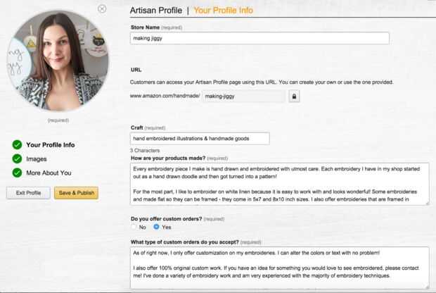 Lo primero que querrá hacer es crear un perfil artesanal para sí mismo. Diríjase a la página del vendedor para encontrar el enlace para ello. Esto es esencialmente su frente de tienda y será lo que puede vincular a sus clientes.