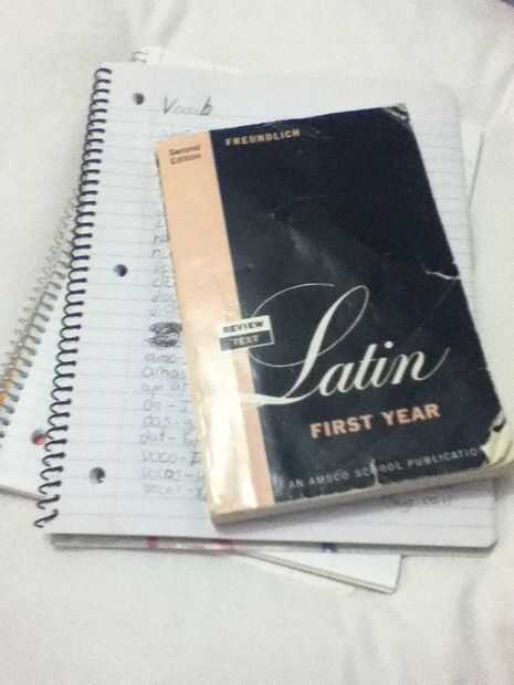 Encontrar una base de datos se puede aprender de. Usé un primer año Universidad Latina libro de texto que me dio mi mamá. Si no puede encontrar un libro, puede utilizar el ordenador, iPhone, iPad, iPod, etc..