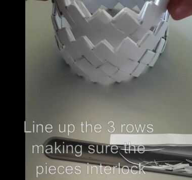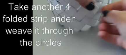 Llevará 3 filas y apilarlos uno encima del otro. Tome su izquierda sobre tira y trama tejida a través de la mitad de una tira en cada fila, que el artículo de acceso en la parte inferior de la canasta.