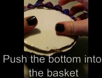Encontrar la circunferencia de la canasta, haciendo un círculo que es 1-3 cm más grande. Pegar alrededor de la parte inferior de la cesta y los bordes de la pieza de papel. Lugar el papel inferior doblado en el cesto asegurándose que el pegamento está en contacto con el papel.