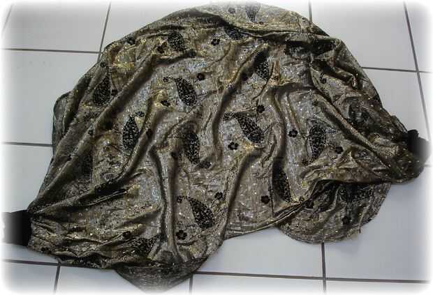 he encontrado una maravillosa estola rosca oro pura mirada en una de mis expediciones a la buena voluntad. Es semi transparente y llena de hilos brillantes y pensé que era realmente grande. Dios sabe lo que se supone que cuando era nuevo! Decidí usar esto en vez de mi capa de terciopelo marrón, que voy a guardar para otro día! Creo que corté un tablero