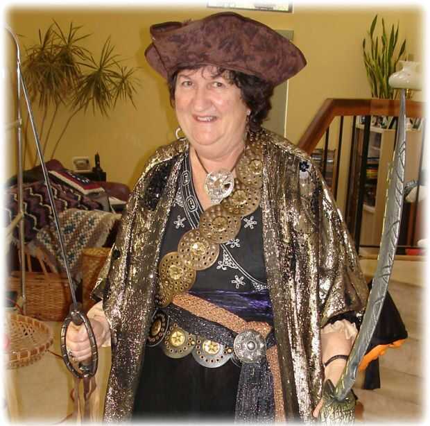 Fui con el sombrero marrón, pantalón negro liso, camisola de seda marrón con el chaleco de algodón negro con lentejuelas. Todos estos estaban cubiertos con mi estola de oro reluciente. Yo también había adornado con una variedad de bufandas y bandas para efecto añadido.
