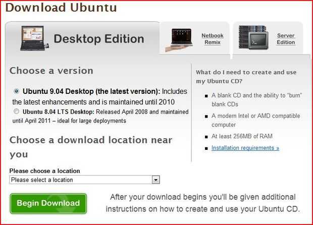 - Cualquier escritorio de Ubuntu instalar CD; obtener la nueva versión (9.04) aquí. Esta guía funciona con cualquier versión de 8.04 a 9.04.