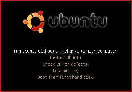 1. Inserte el CD de Ubuntu en la unidad y reiniciar. Si configura la BIOS correctamente, debe ser recibido por una pantalla como la visto por debajo. Seleccione la segunda opción, pero si le gustaría probarlo antes de instalarlo, sienta libre de seleccionar la primera opción. No se preocupe el resto de las opciones; no necesitamos ahora.