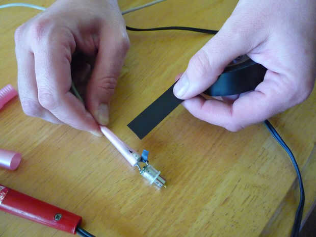 Primer uso la parte más pequeña del aplicador, envoltura apretada y golpearlo con cinta aislante.