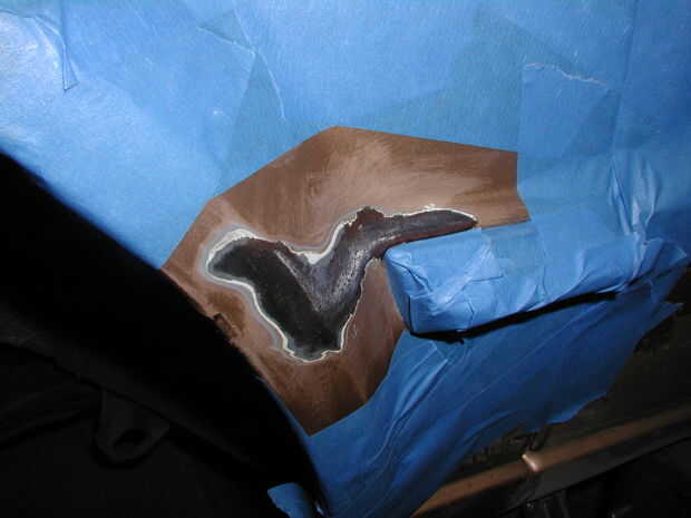 Si quería, podía han utilizado a Bondo para igualar algunas de las abolladuras y llenar el espacio donde la pintura se ha ido