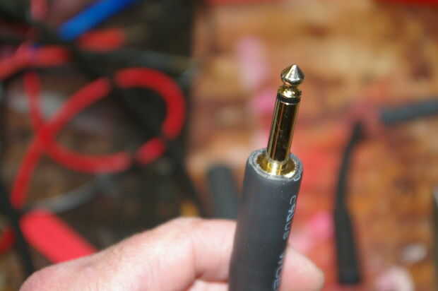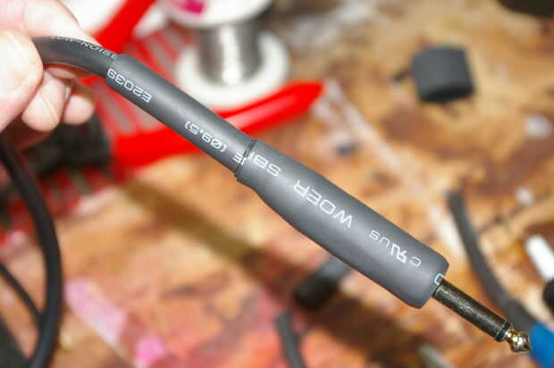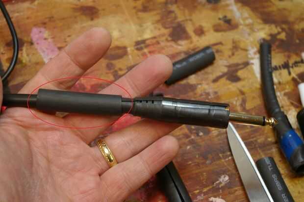 Esta parte es opcional. Pero si tuvieras algún tipo de tubo del encogimiento del abrigo del cable originalmente, es probablemente una buena idea para tratar de reemplazarlo. Creo que esto realmente ayuda a proteger los empalmes de la soldadura manteniendo el cable de movimiento dentro del cuerpo del conector y fatigando los empalmes de la soldadura.