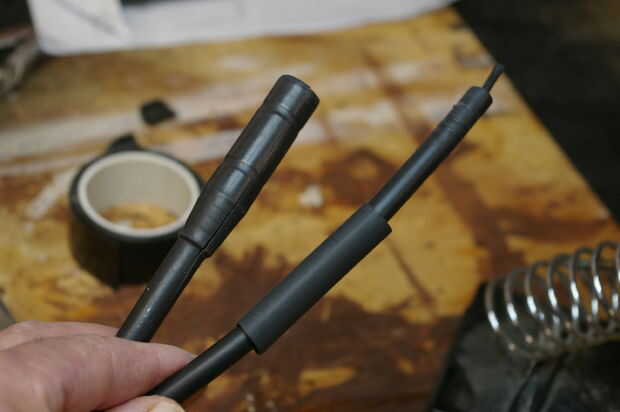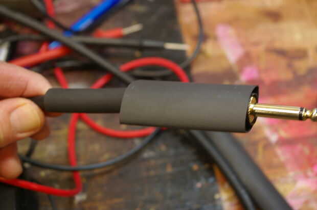 Usted podría apenas conseguir grandes suficiente para cubrir la cosa entera en un solo paso de tubos del abrigo del encogimiento. Me gusta usando el material original junto con el nuevo abrigo del encogimiento para llegar de un extremo del cable super tieso. Pero esto no puede ser lo que usted quiere - así que este paso todo es opcional. Incluso podría utilizar varios colores diferentes de tubería y código de colores de los cables.