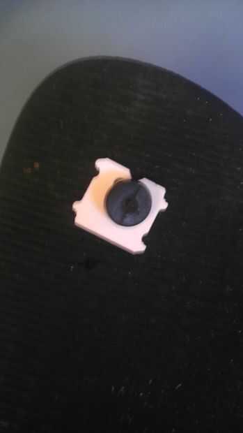 Ahora que tienes el clip del pan y el tanga ha sido asomó por el agujero que usted puede empujar el pan clip en, hacer esto es simple, donde la parte abierta del clip de pan, esto es donde alinean con la pieza negra de goma que se asomó a través de, pulse la pinza completamente en. ahora debería tener una tanga que es tan bueno como nuevo! una solución simple para una costosa pieza de calzado.