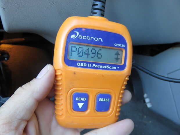 Mire debajo del borde inferior de su tablero de la rociada de conductores secundarios. Usted encontrará un puerto en forma trapezoidal para el lector. Conectar el lector mientras el motor y el encendido están apagado. Una vez conectado, vuelta key ón pero deje el emotor off (KOEO). Presione el botón de escanear y ver el pensar en el lector. Finalmente mostrará códigos almacenados en la computadora. Pasar los códigos y escríbalas. En mi caso el código es P0496.