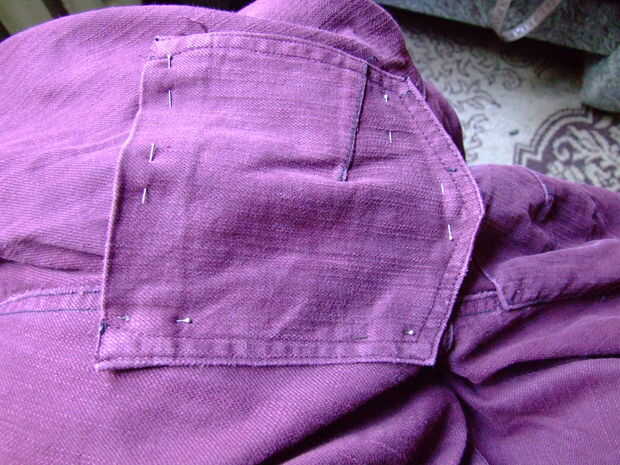 Elija exactamente cómo desea el bolsillo para ser cosida en. Fije con alfileres.