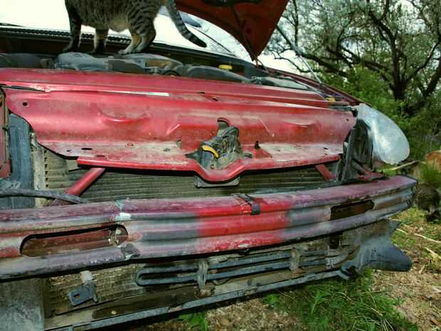 No a mucho después de que el accidente fue y visité y miró el coche y pensaban que estaban equivocados. Había reparado mi camioneta mini después de golpear un ciervo y que el daño fue peor que esto. Por supuesto estaba figurando como un proyecto de DIY en el espíritu verdadero de instructables. No tengo que pagar precio de distribuidor completo de piezas. Así que le dije a mi hija a la compañía de seguros que estábamos manteniendo el coche. Le pagué el salvamento $300,00 que querían y se convirtió en el dueño del "coche volador", que es lo le llaman.