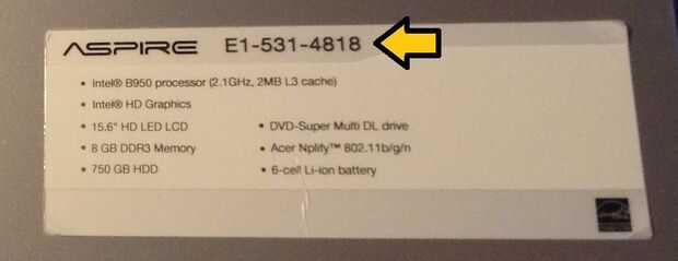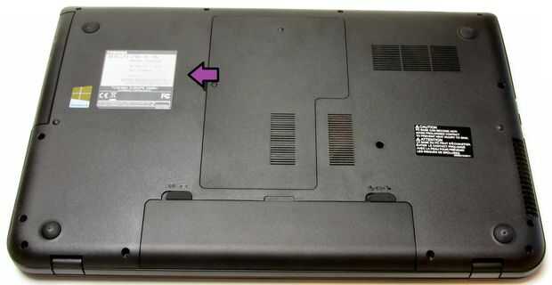 -- Usted debe ser capaz de encontrar el número de modelo en algún lugar en una etiqueta en su computadora portátil, la pegatina está generalmente situada al lado (a la derecha de) el Trackpad (ratón) o en la parte inferior de la computadora portátil