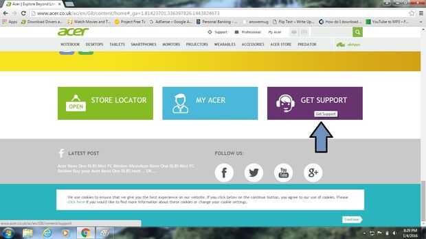 -- En la mayoría de sitios web del fabricante, la sección de soporte estará ubicada en la parte superior o la parte inferior de la página de inicio