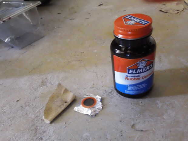 No estoy usando un accesorio de parche porque mina funcionó fuera de cemento de goma. así que estoy usando pegamento de caucho de Elmer.