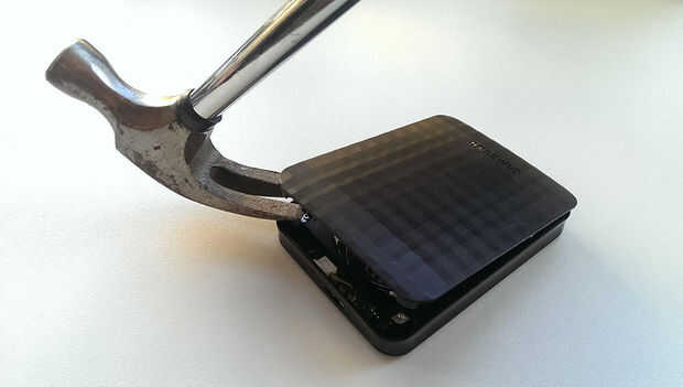 Con la garra del martillo, Premio Abra la tapa de plástico del disco duro.
