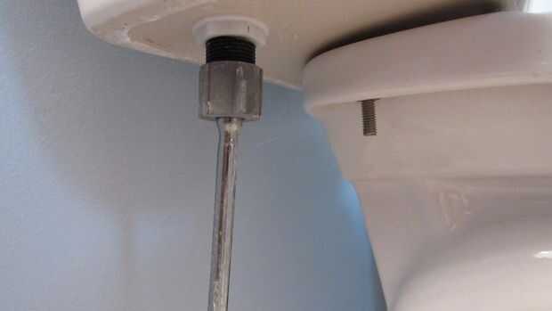 Desenrosque la válvula de descarga de WC tuerca de fijación de la línea de suministro de agua.