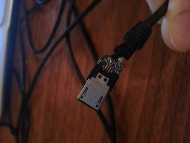 En caso de mi temas de carga fueron causadas por daños en mi nuevo cargador, tomé un cable del USB sabía ser quebrado, agrietado abierto y comprobado por daños y perjuicios. Efectivamente un rastro había levantado y fue rápidamente solucionado con un poco de soldadura. El caso fue roto en el proceso, pero substituido fácilmente con un poco de cinta aislante ya que era un cable de copia de seguridad de todos modos.