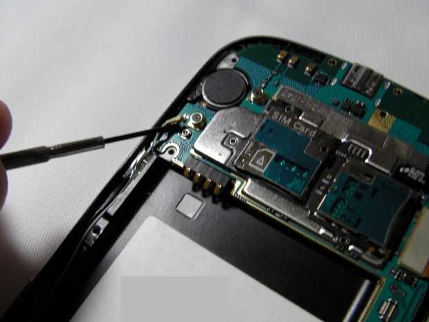 Quitar todos los tornillos sosteniendo el caso interno de su teléfono en su lugar, observando las variaciones de longitud y manipular características evidentes como la pintura de la codificación policromática o rasgar lejos pegatinas para ayudar a la reinstalación. Luego, con un destornillador de cabeza plana micro, levante la sección de un panel interior de la caja hasta que se expone la placa principal. Muchos de los teléfonos tendrá stick en antenas montadas en la caja de plástico interior. Al retirar, asegúrese de mirar hacia fuera para éstos como rasgando que una conexión arruinará la antena asociada. En el caso de Galaxy SIII, estas conexiones son conexiones físicas manos en su lugar por el caso sí mismo, permitiendo un retiro de la caja sin daños.